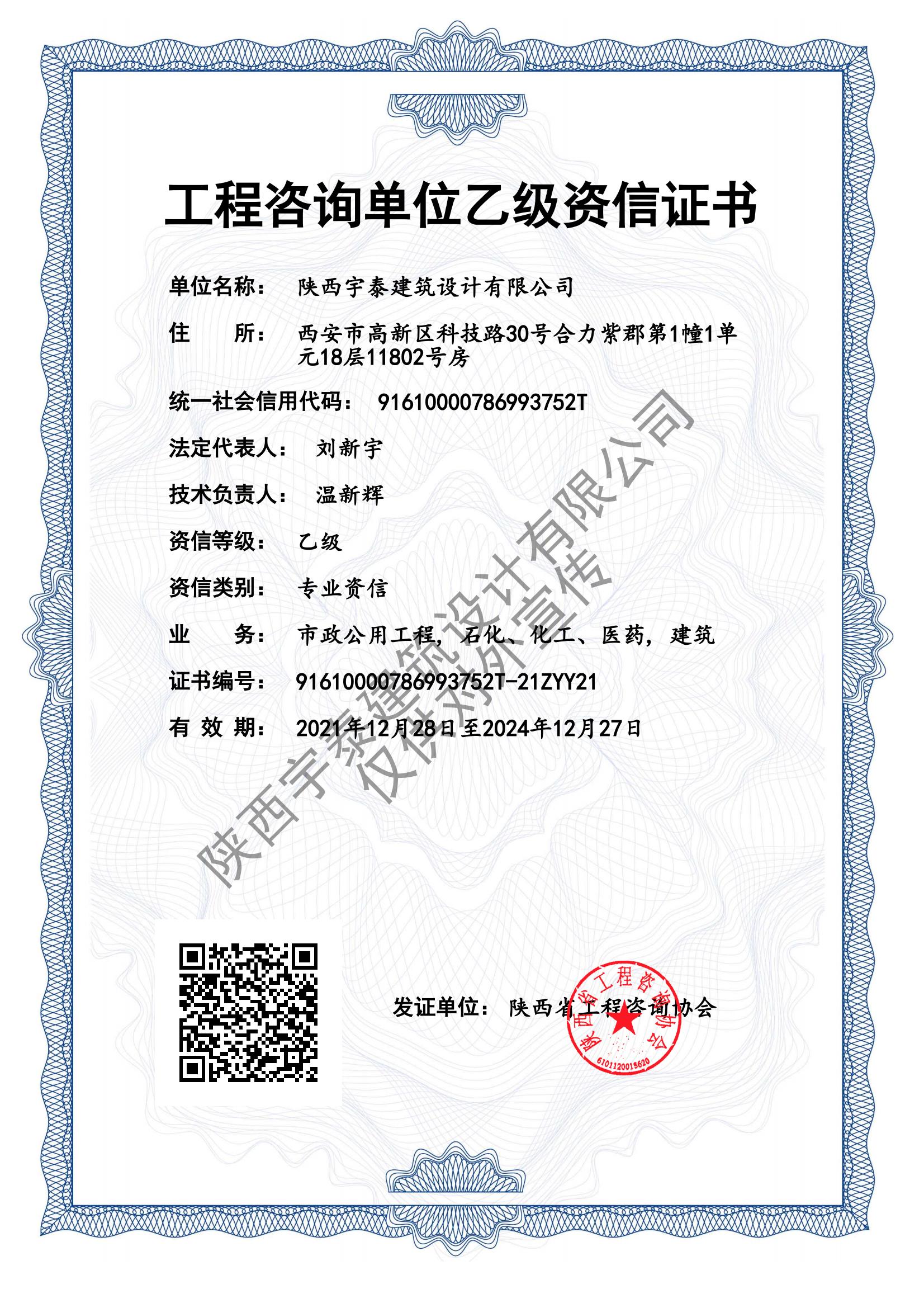 • 熱烈祝賀陜西宇泰建筑設計有限公司工程設計資..